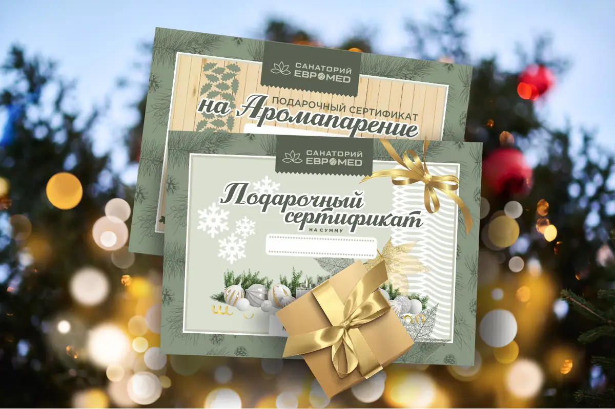 Дорогие гости Санатория «Евромед», по вашим многочисленным просьбам открыта продажа подарочных сертификатов. Их можно оформить на любую сумму для приобретения путевок, услуг и процедур в санатории, а также отдельно на сеансы аромапарения.