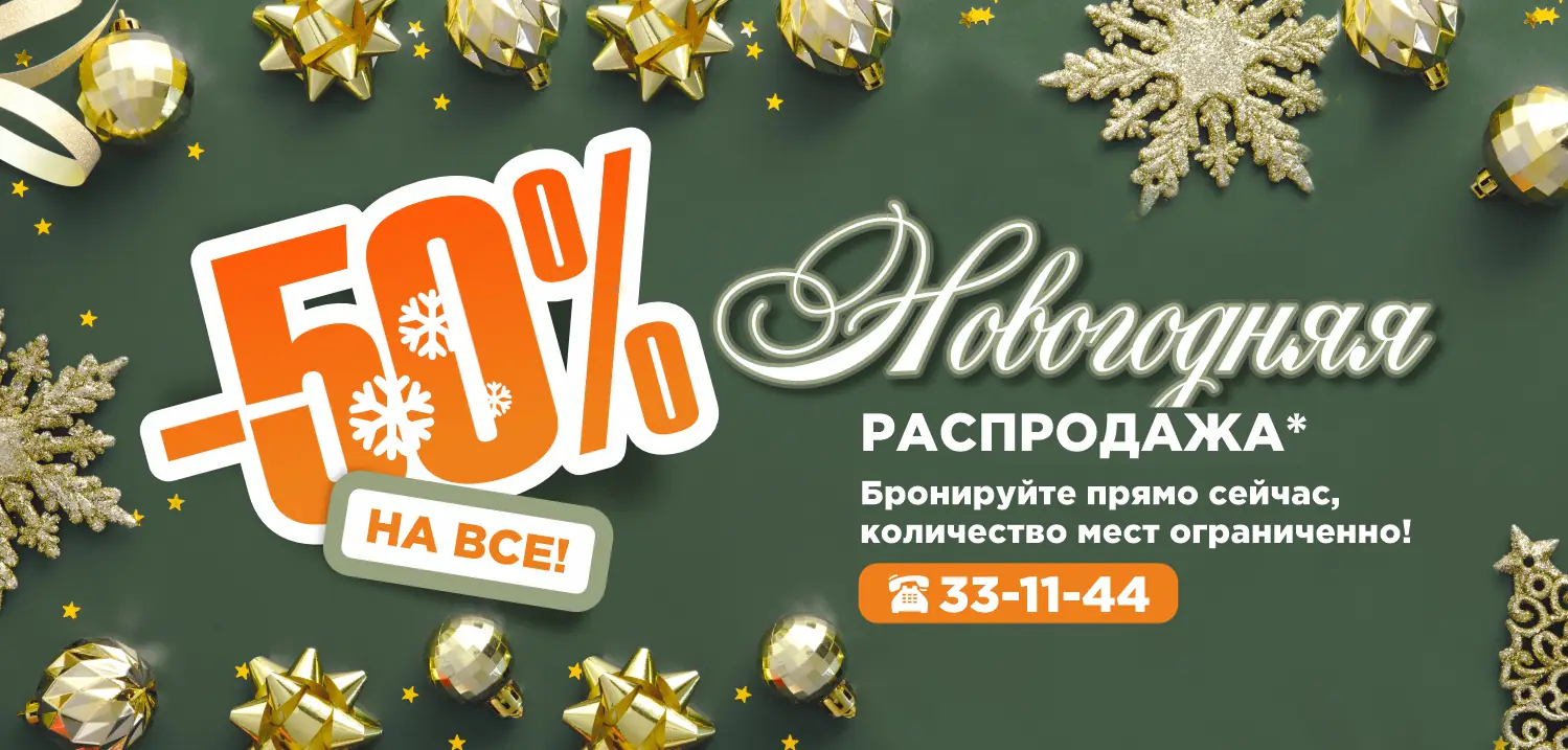 * Организатор акции ООО «Санаторий «Евромед». Сроки проведения акции 16.12.2024 – 28.12.2024. Скидка 50% предоставляется при условии приобретения путевки длительностью от 2-х дней с выездом не позднее 28 декабря 2024 г. Скидка не суммируется с другими скидками, специальными предложениями и не распространяется на ранее приобретенные и забронированные путевки.