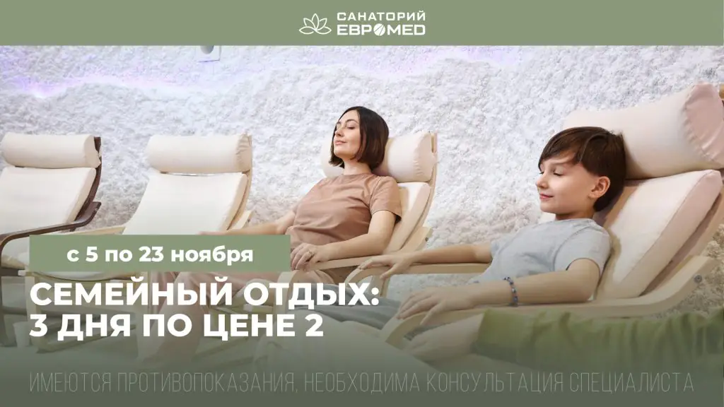Во время школьных каникул подарите себе и детям дни заботы и восстановления в санатории «Евромед».Чистый воздух, осенний парк с белками, теплый минеральный бассейн и тишина вдали от городской суеты — все, чтобы наполниться энергией перед новым учебным периодом!